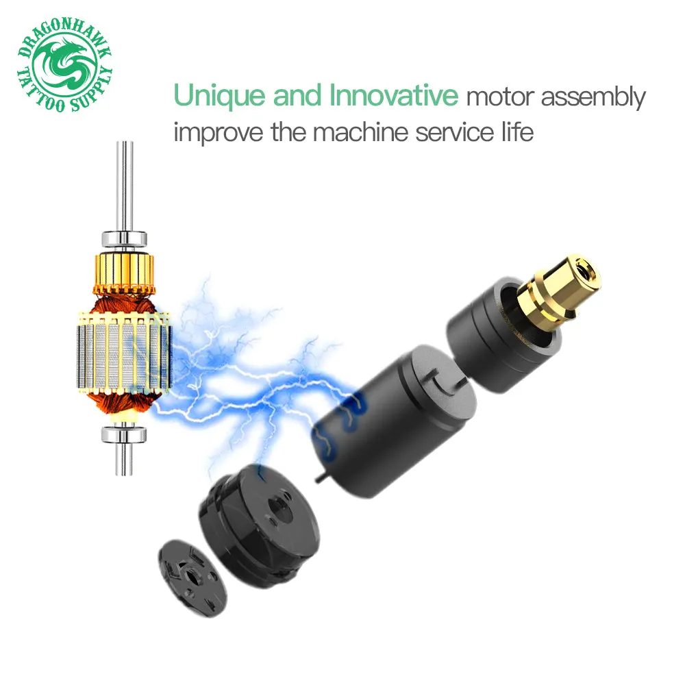 Motorul japonez coreless asigură o funcționare lină, silențioasă și constantă, cu reacție rapidă la mișcare. Alimentarea prin cablu RCA oferă un voltaj stabil pe toată durata procedurii, aspect esențial pentru implantarea uniformă a pigmentului și rezultate previzibile după vindecare.